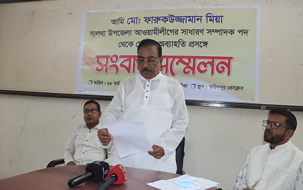 শারীরিক অসুস্থতা ও বার্ধক্যের কারণ দেখিয়ে ফরিদপুরের সালথা উপজেলা আওয়ামী লীগের সাধারণ সম্পাদকের পদ থেকে পদত্যাগ করেছেন মো. ফারুকউজ্জামান মিয়া। একই সঙ্গে তিনি দলের প্রাথমিক সদস্যপদও ছেড়ে দেওয়ার ঘোষণা দিয়েছেন।