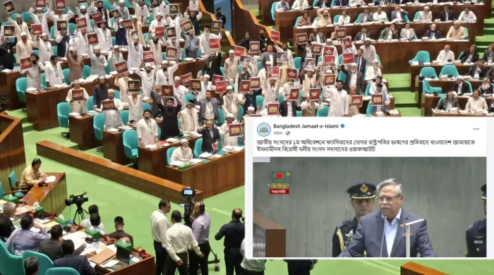 ত্রয়োদশ জাতীয় সংসদের প্রথম অধিবেশনের প্রথম দিনেই রাষ্ট্রপতি মো. সাহাবুদ্দিনের ভাষণ দেওয়াকে কেন্দ্র করে সংসদ থেকে ‘ওয়াকআউট’ করেছে বিরোধী দল বাংলাদেশ জামায়াতে ইসলামী। সংসদ থেকে ওয়াকআউট করলেও দলীয় ফেসবুক পেজ